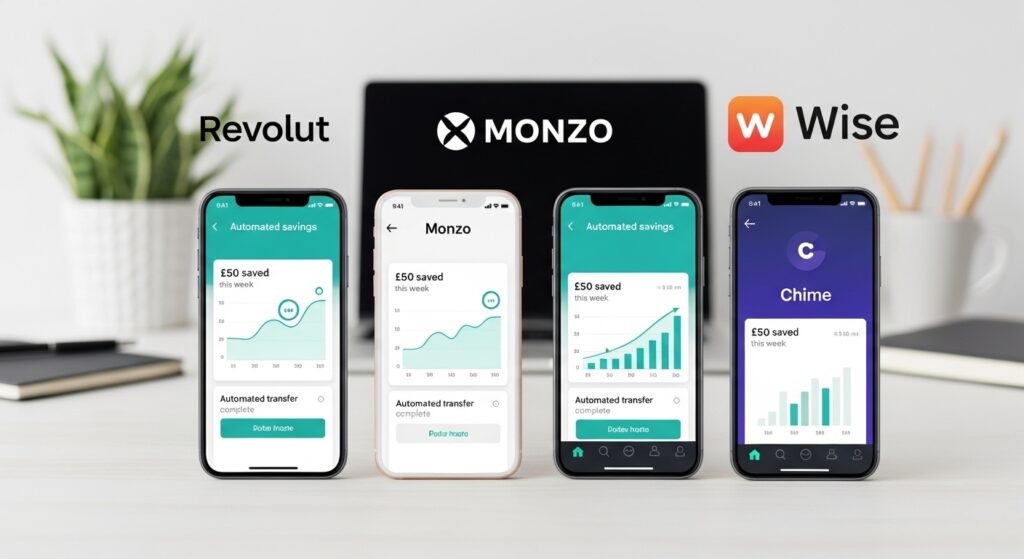 Platforms like Revolut, Monzo, Chime, and Wise help automate savings, track expenses, and even round up spare change into investment accounts.