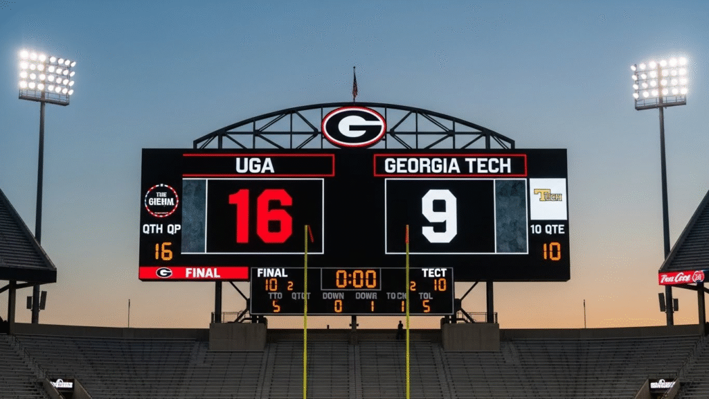 Explore how UGA secured a gritty 16–9 win over Georgia Tech in the 2025 Gridiron Classic. This detailed breakdown covers key moments, defensive strategy, player highlights, stats, sources, FAQs, and everything you need to know about this iconic rivalry battle.